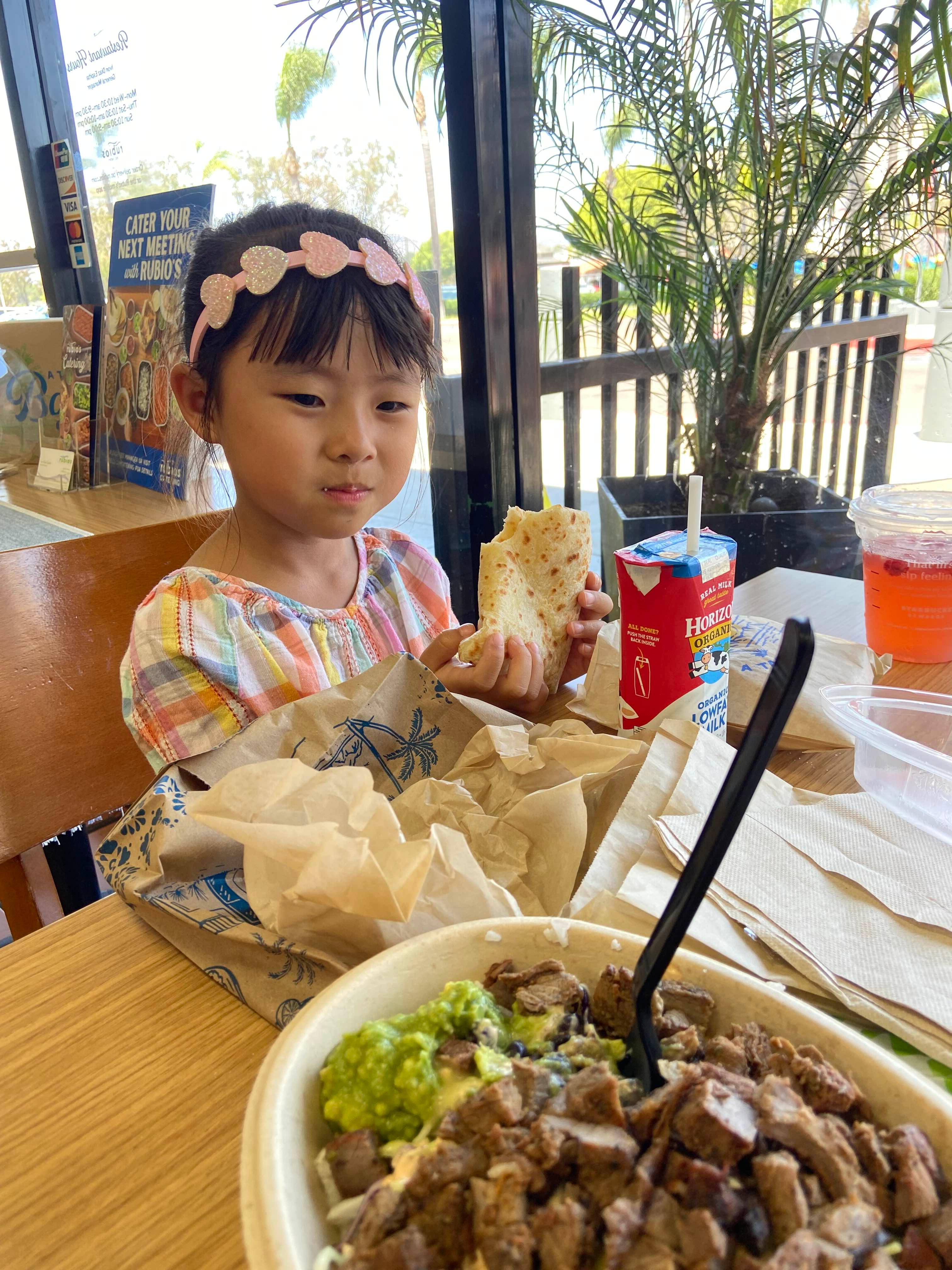 11시쯤 놀기 시작해서 거의 1시까지 두 시간을 내리 놀아준 덕분에 나는 앉아서 업무를 보고 조금 늦은 점심을 먹을 수 있었다. 회사에서는 사장님이 금요일인 데다가 좋은 일이 있으셔서 피자를 쏘셨다고 했는데 당장 달려가고 싶었지만 달려갈 수 있는 차가 없어서 ㅎㅎ 하루와 함께 Rubios에 음식을 주문해 놓고 두시쯤 늦은 점심을 먹었다.