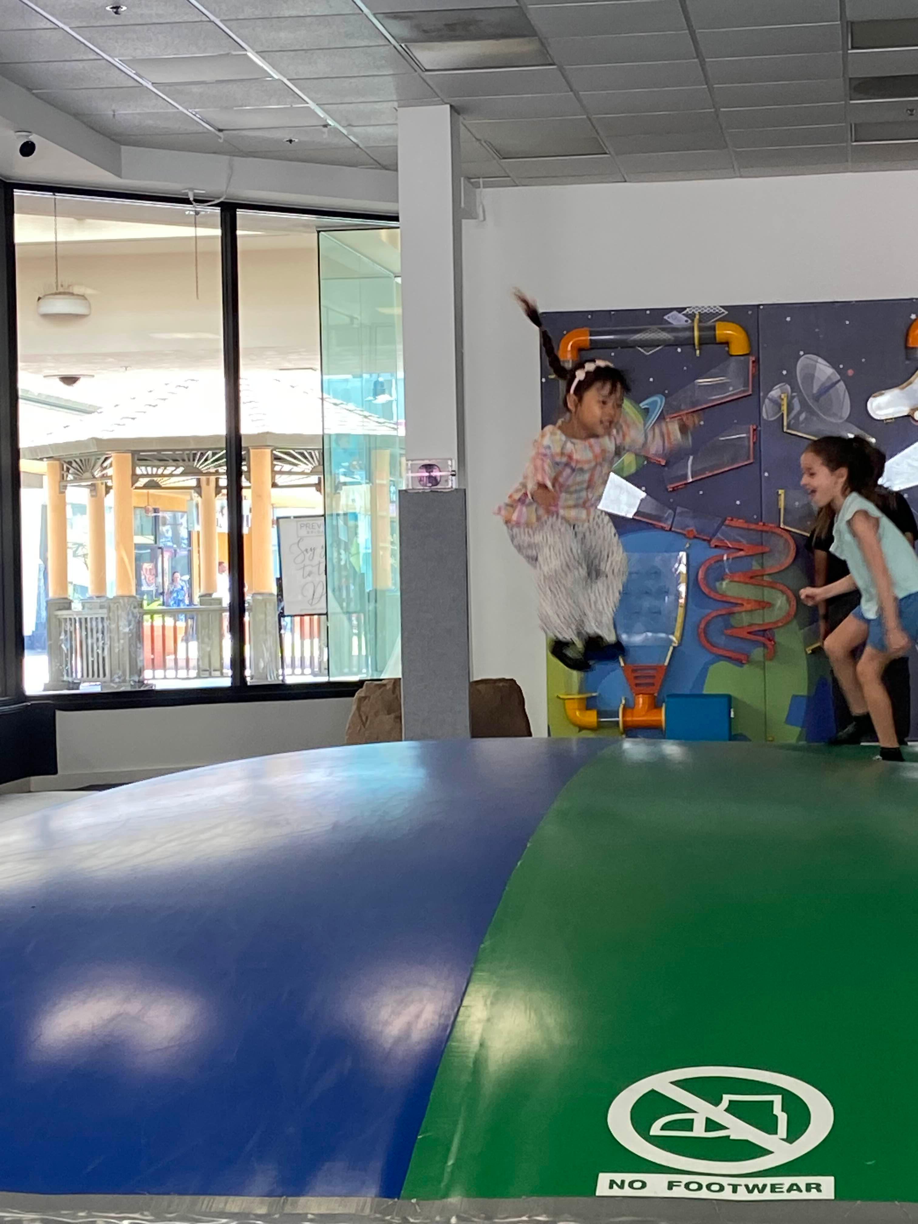 입장료는 종일 노는데 $22.00이고 양말을 구매해야 하는데 우리는 전에 신었던 양말이 있어서 가지고 갔다. (아이와 같이 입장하는 어른은 무료이고 양말은 $4.00이었던 것으로 기억). 여기는 음식을 따로 제공하는 곳이 없기 때문에 음식을 챙겨갈 수 있다. 먹을 수 있는 테이블도 넉넉하고, 아이들이 노는 공간 주변에는 부모님들이 앉아서 지켜볼 수 있는 곳이 군데군데 있기 때문에 일하면서 아이를 보기에는 완벽하다.