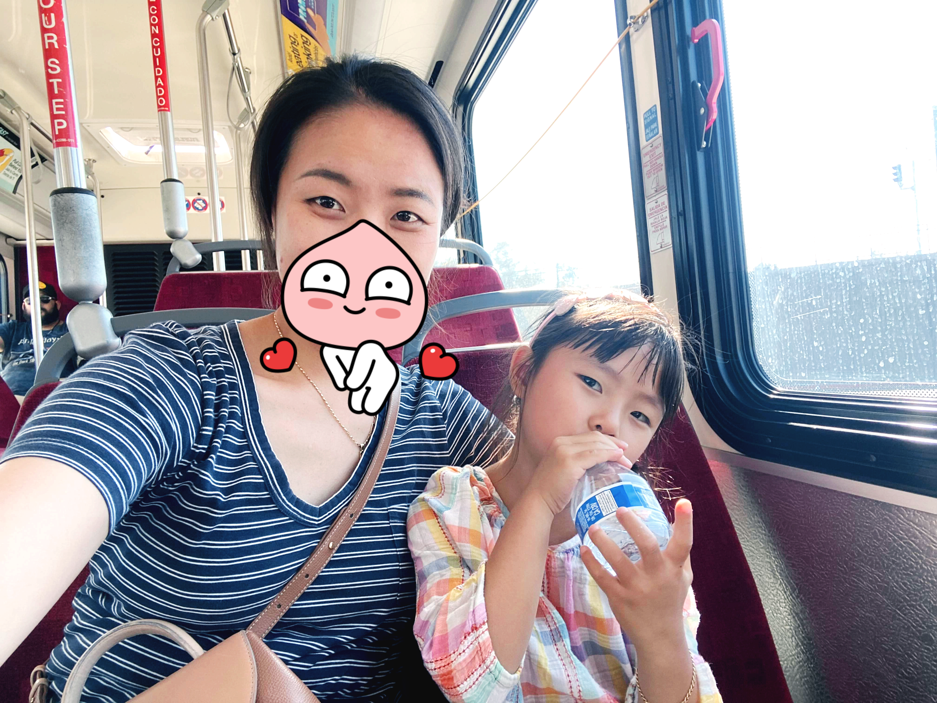 스쿨버스는 캠프 때 타 봤지만 일반 버스는 처음이라며 설레하던 하루와 달리 횡단보도를 건너는 동안 우리 앞쪽에서 매정하게 좌회전을 한 후 스탑하지 않고 휙 떠나버린 버스기사 때문에 나는 좀 속상했다 (그 버스 놓치고 20분을 뙤약볕에서 기다림 ㅜ)